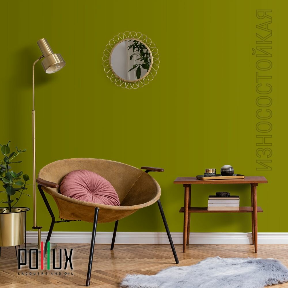 Краска моющаяся интерьерная для стен и потолков, Pollux INTERIOR без запаха, быстросохнущая, акриловая, матовое покрытие, цвет NCS S 6030-G70Y, 1л.