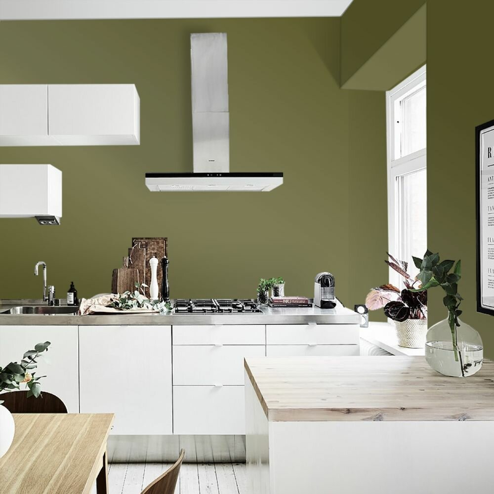 Краска моющаяся интерьерная для стен и потолков, Pollux INTERIOR без запаха, быстросохнущая, акриловая, матовое покрытие, цвет NCS S 6020-G70Y, 1л.