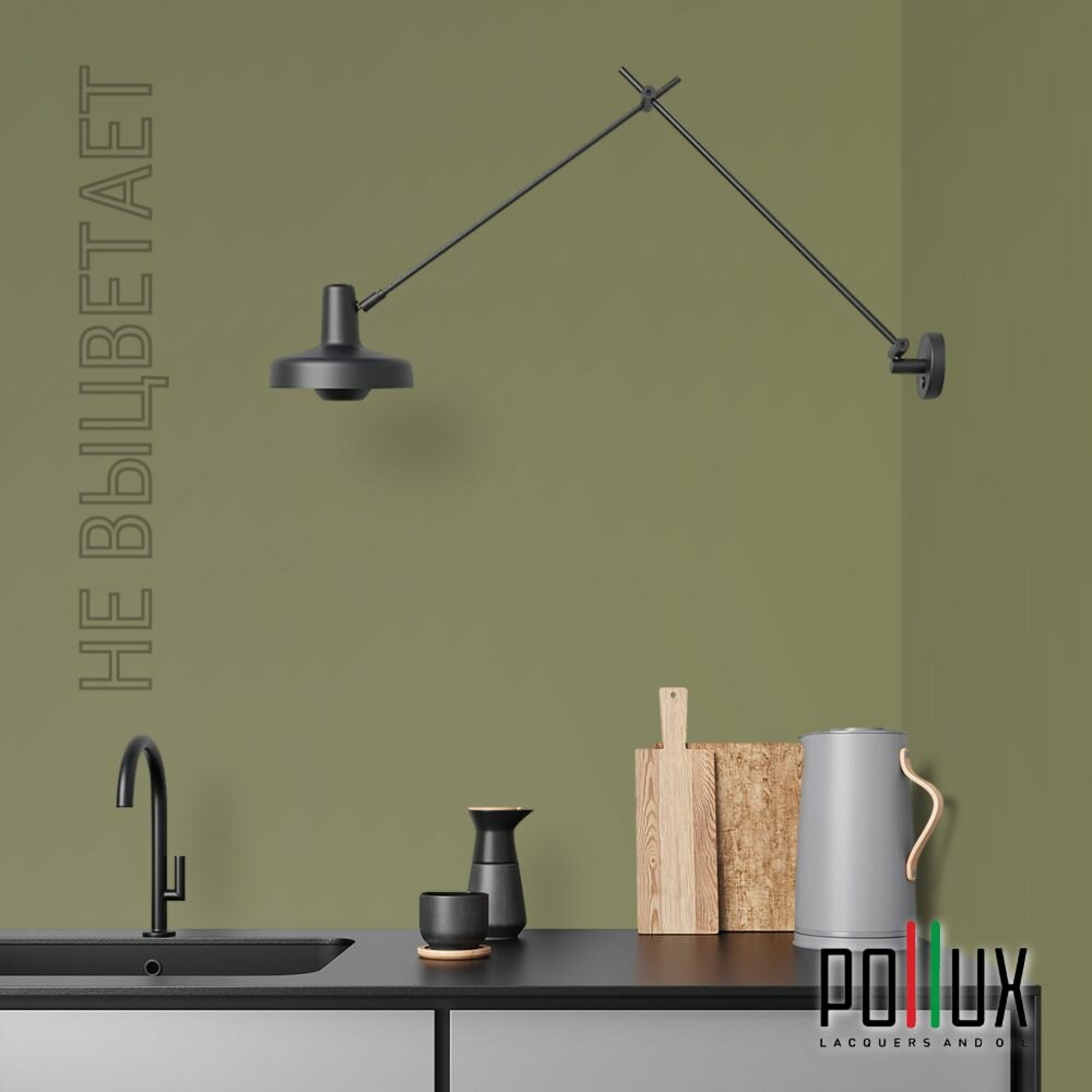 Краска моющаяся интерьерная для стен и потолков, Pollux INTERIOR без запаха, быстросохнущая, акриловая, матовое покрытие, цвет NCS S 6030-G70Y, 1л.