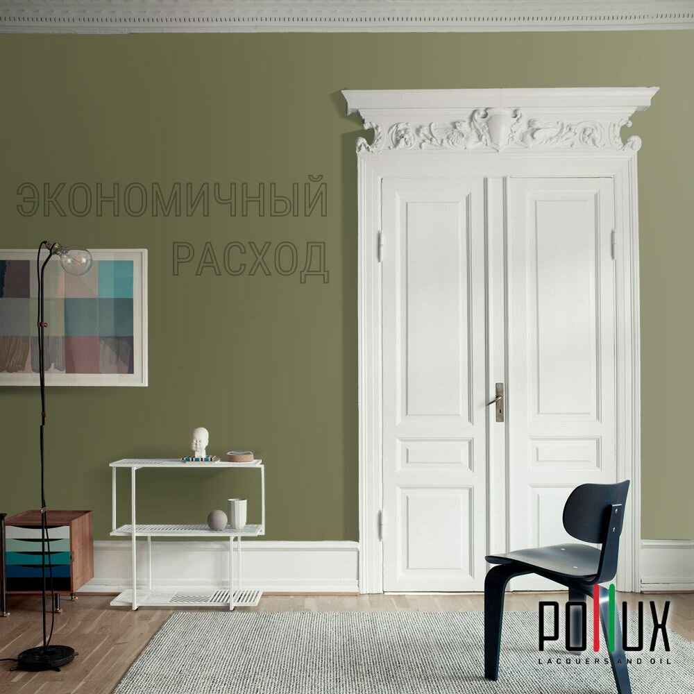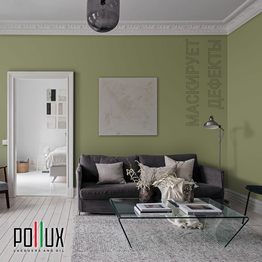 Краска моющаяся интерьерная для стен и потолков, Pollux INTERIOR без запаха, быстросохнущая, акриловая, матовое покрытие, цвет NCS S 8010-G70Y, 1л.
