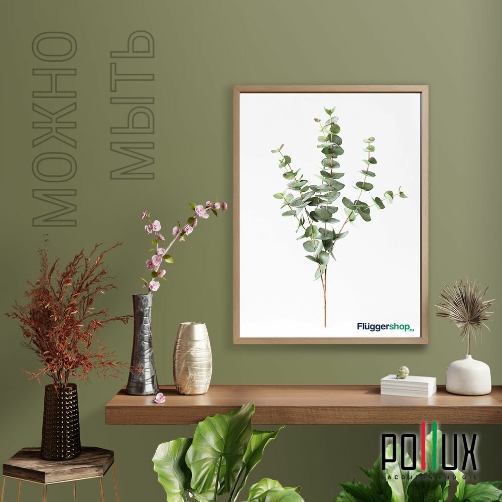 Краска моющаяся интерьерная для стен и потолков, Pollux INTERIOR без запаха, быстросохнущая, акриловая, матовое покрытие, цвет NCS S 4050-G70Y, 1л.