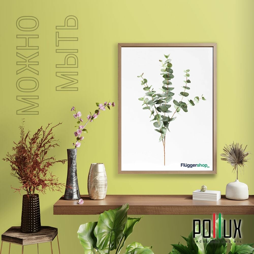 Краска моющаяся интерьерная для стен и потолков, Pollux INTERIOR без запаха, быстросохнущая, акриловая, матовое покрытие, цвет NCS S 6030-G70Y, 1л.