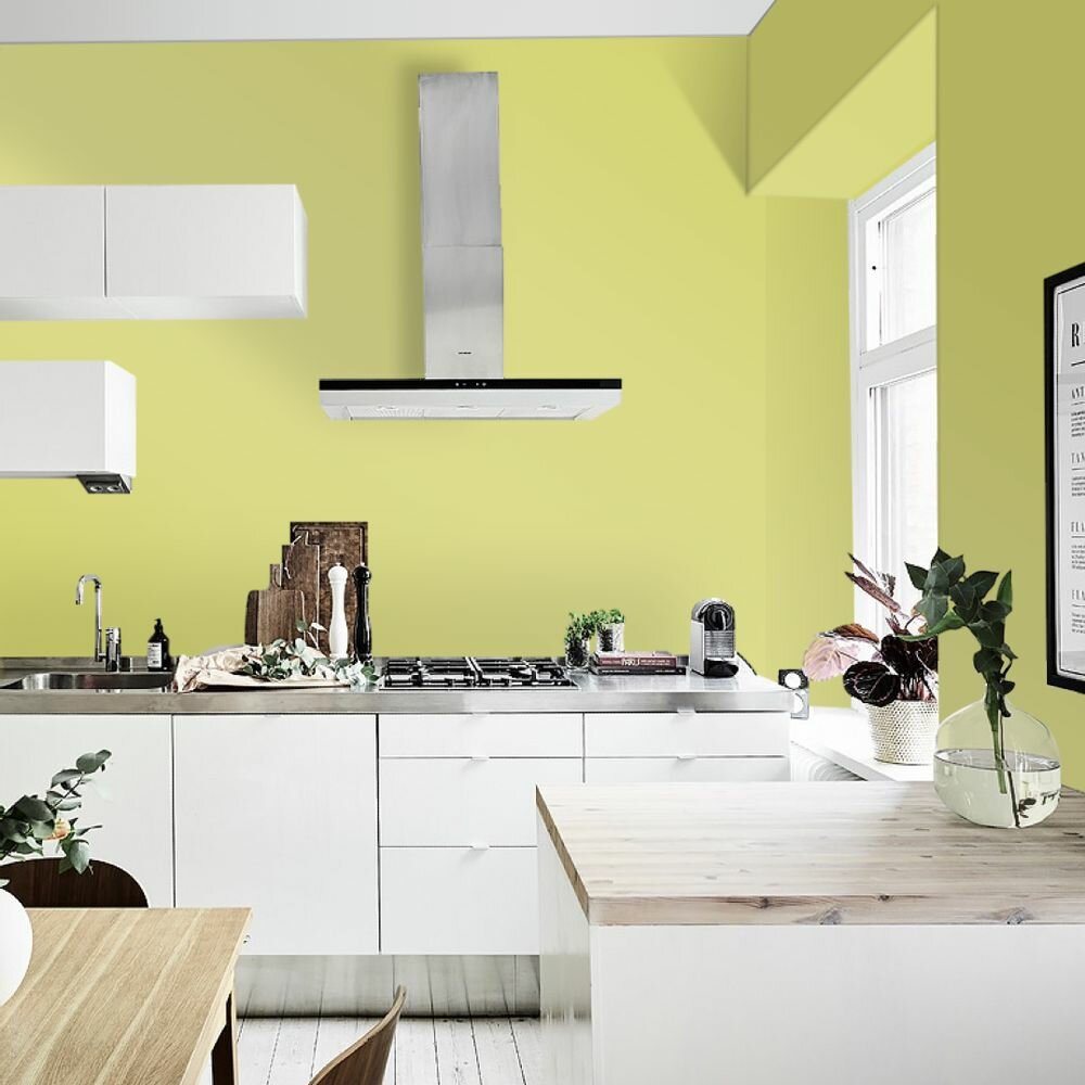 Краска моющаяся интерьерная для стен и потолков, Pollux INTERIOR без запаха, быстросохнущая, акриловая, матовое покрытие, цвет NCS S 0575-G70Y, 1л.