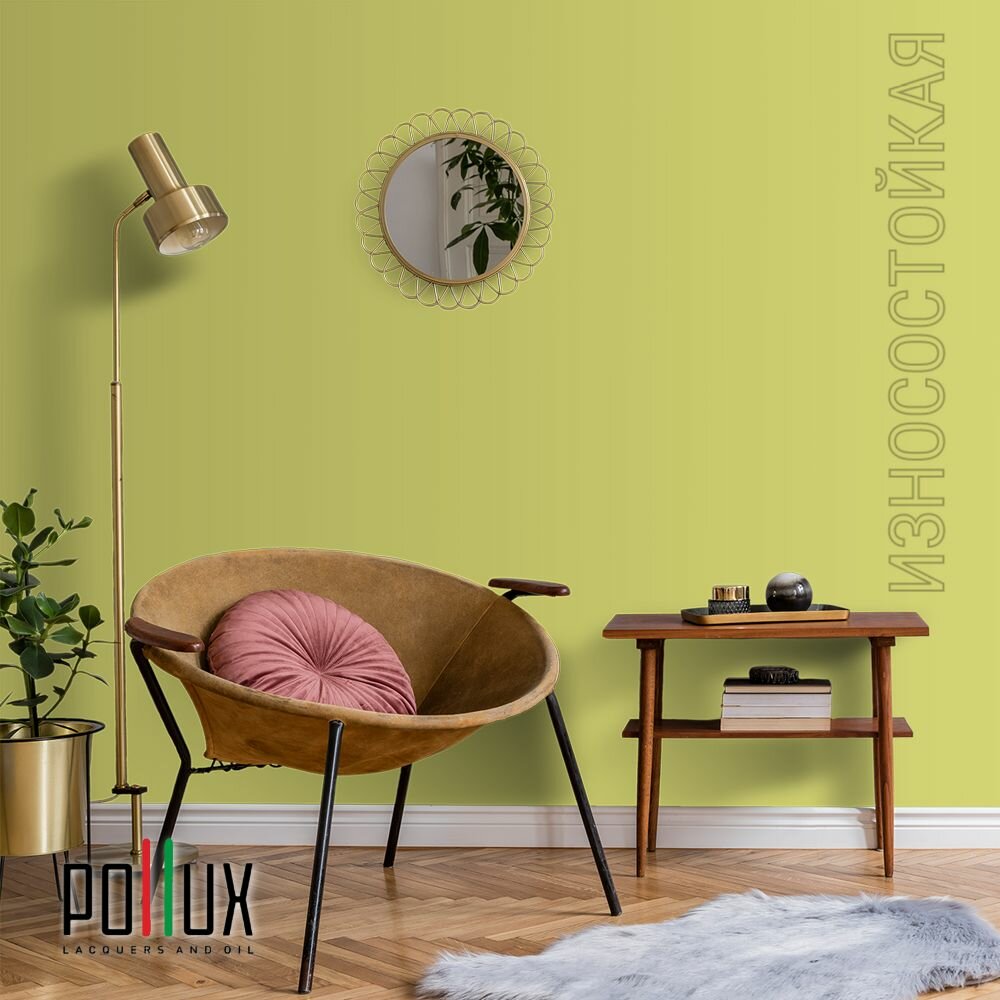 Краска моющаяся интерьерная для стен и потолков, Pollux INTERIOR без запаха, быстросохнущая, акриловая, матовое покрытие, цвет NCS S 0570-G70Y, 1л.