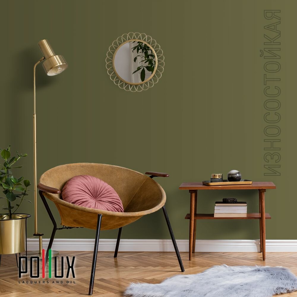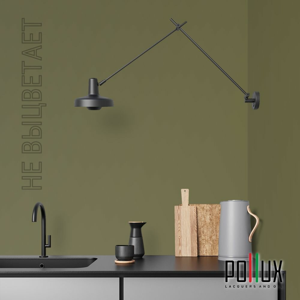 Краска моющаяся интерьерная для стен и потолков, Pollux INTERIOR без запаха, быстросохнущая, акриловая, матовое покрытие, цвет NCS S 8010-G70Y, 1л.