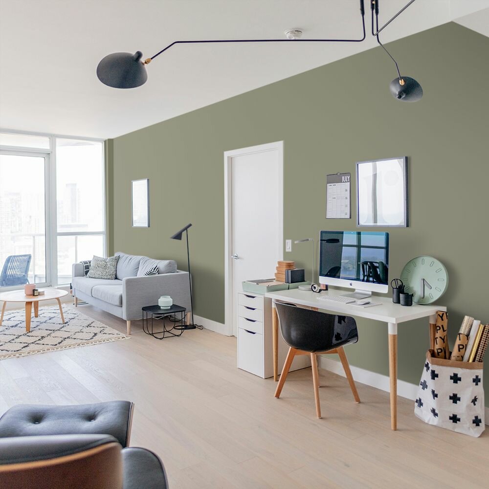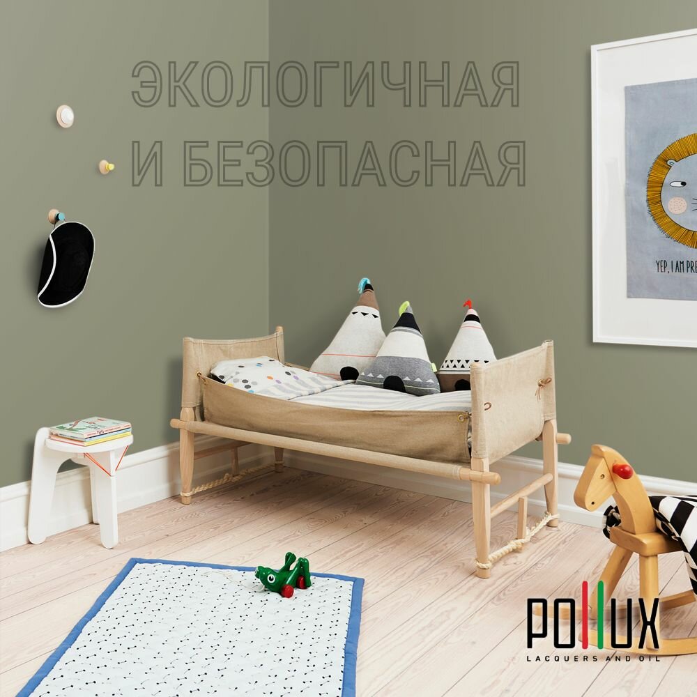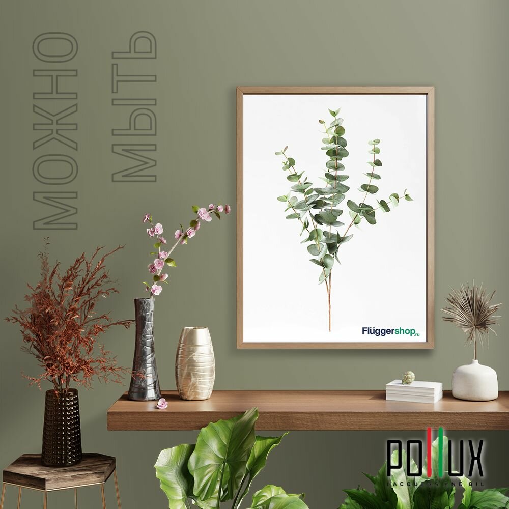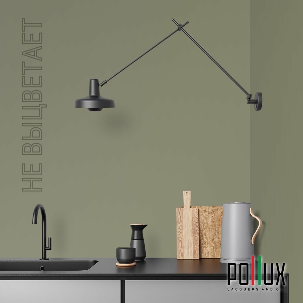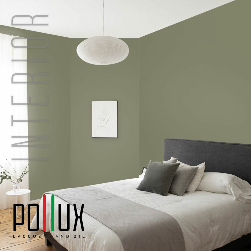 Краска моющаяся интерьерная для стен и потолков, Pollux INTERIOR без запаха, быстросохнущая, акриловая, матовое покрытие, цвет NCS S 8010-G70Y, 1л.