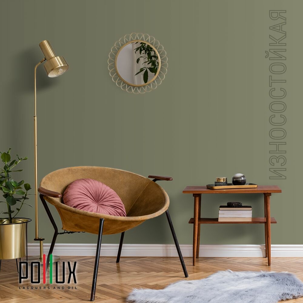 Краска моющаяся интерьерная для стен и потолков, Pollux INTERIOR без запаха, быстросохнущая, акриловая, матовое покрытие, цвет NCS S 3030-G70Y, 1л.