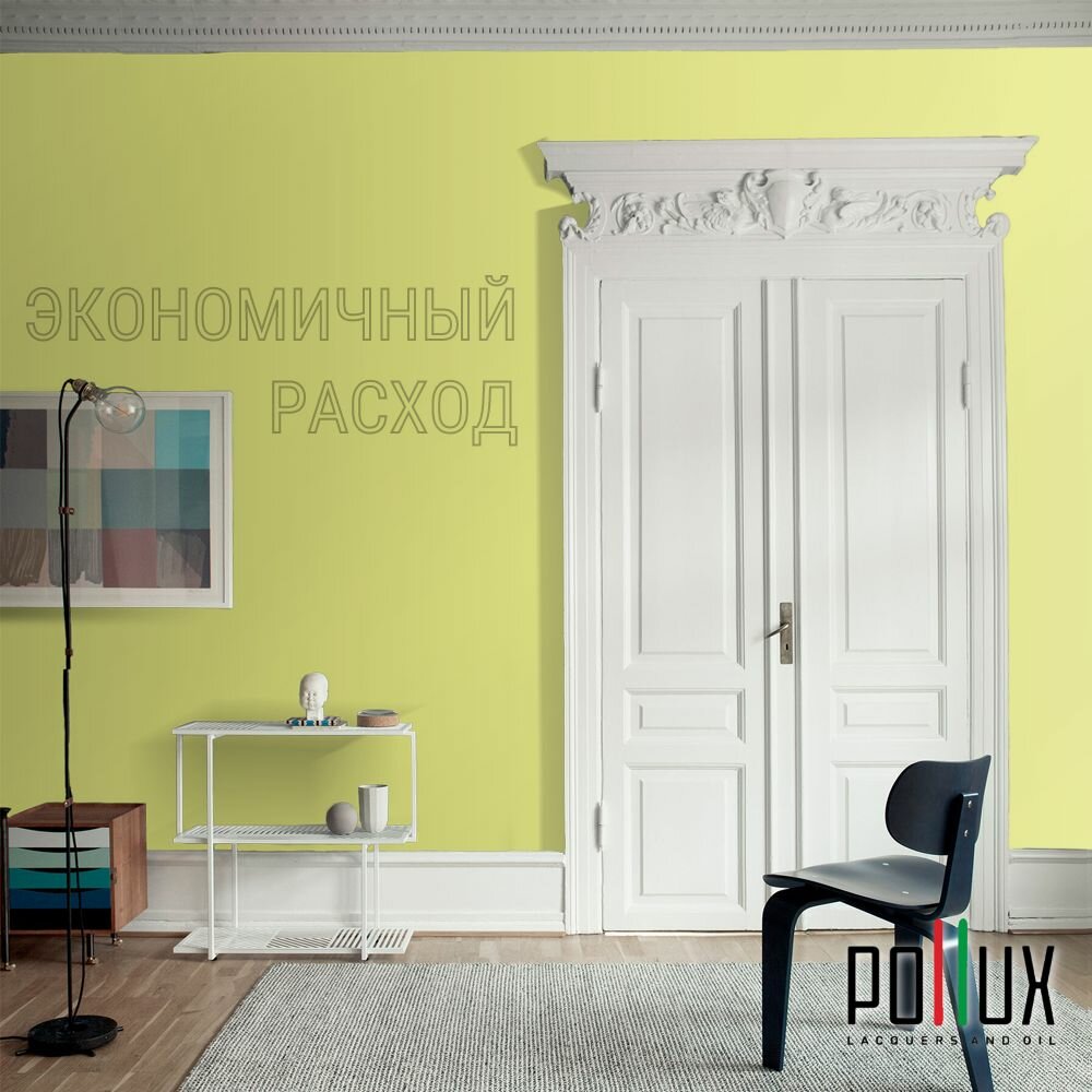 Краска моющаяся интерьерная для стен и потолков, Pollux INTERIOR без запаха, быстросохнущая, акриловая, матовое покрытие, цвет NCS S 0510-G70Y, 5л.
