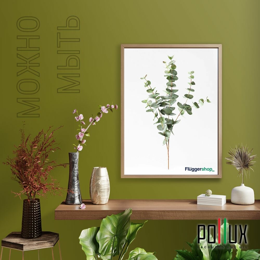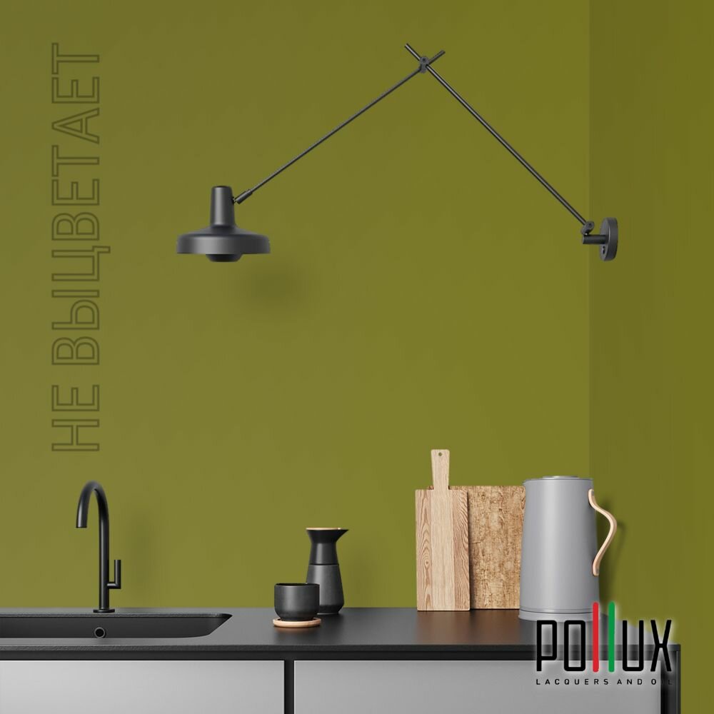 Краска моющаяся интерьерная для стен и потолков, Pollux INTERIOR без запаха, быстросохнущая, акриловая, матовое покрытие, цвет NCS S 6030-G70Y, 1л.