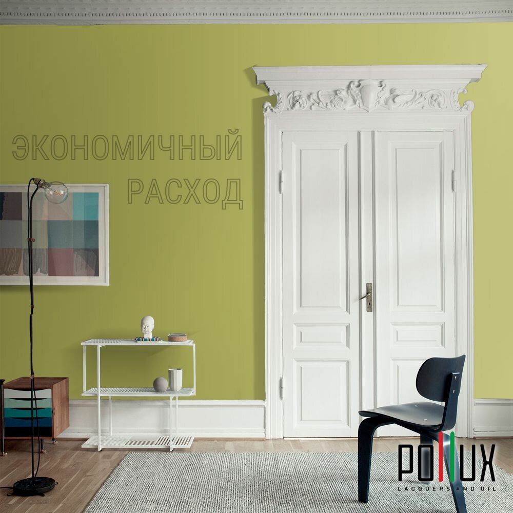 Краска моющаяся интерьерная для стен и потолков, Pollux INTERIOR без запаха, быстросохнущая, акриловая, матовое покрытие, цвет NCS S 0510-G70Y, 5л.