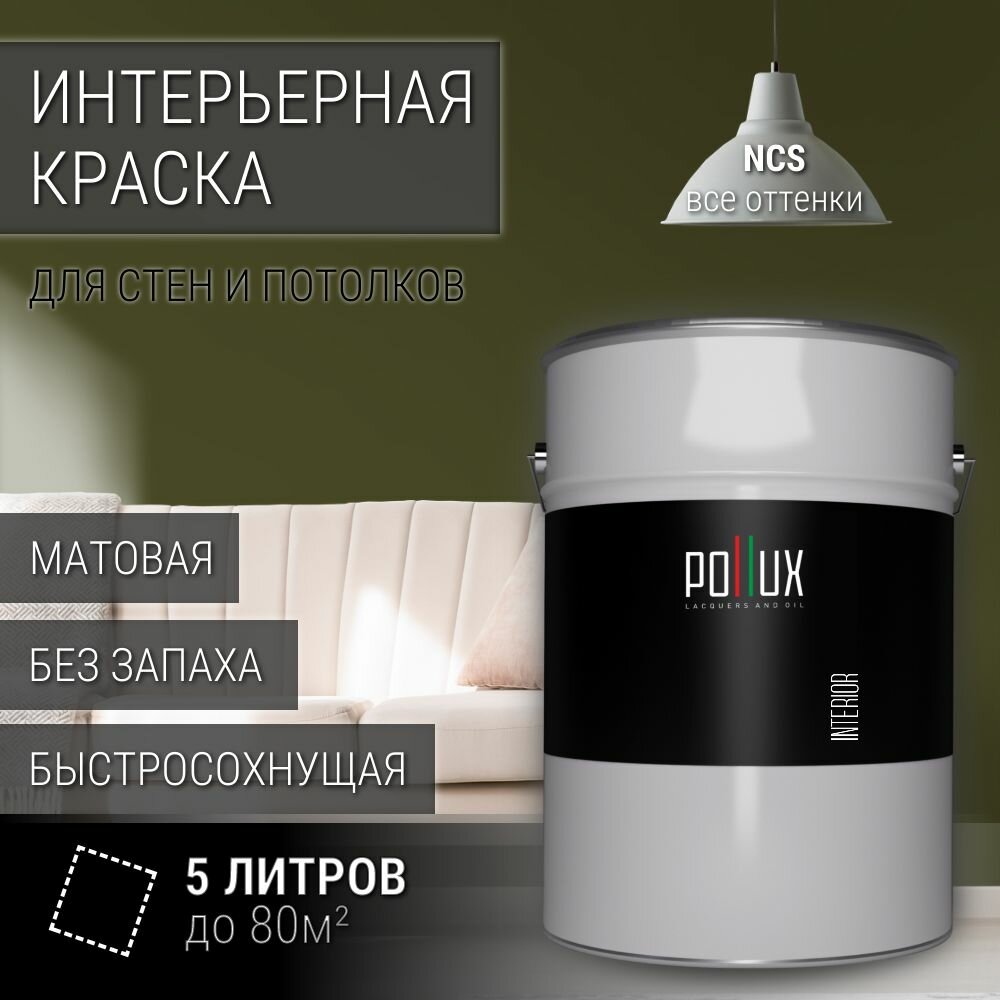Краска моющаяся интерьерная для стен и потолков, Pollux INTERIOR без запаха, быстросохнущая, акриловая, матовое покрытие, цвет NCS S 3010-G70Y, 5л.