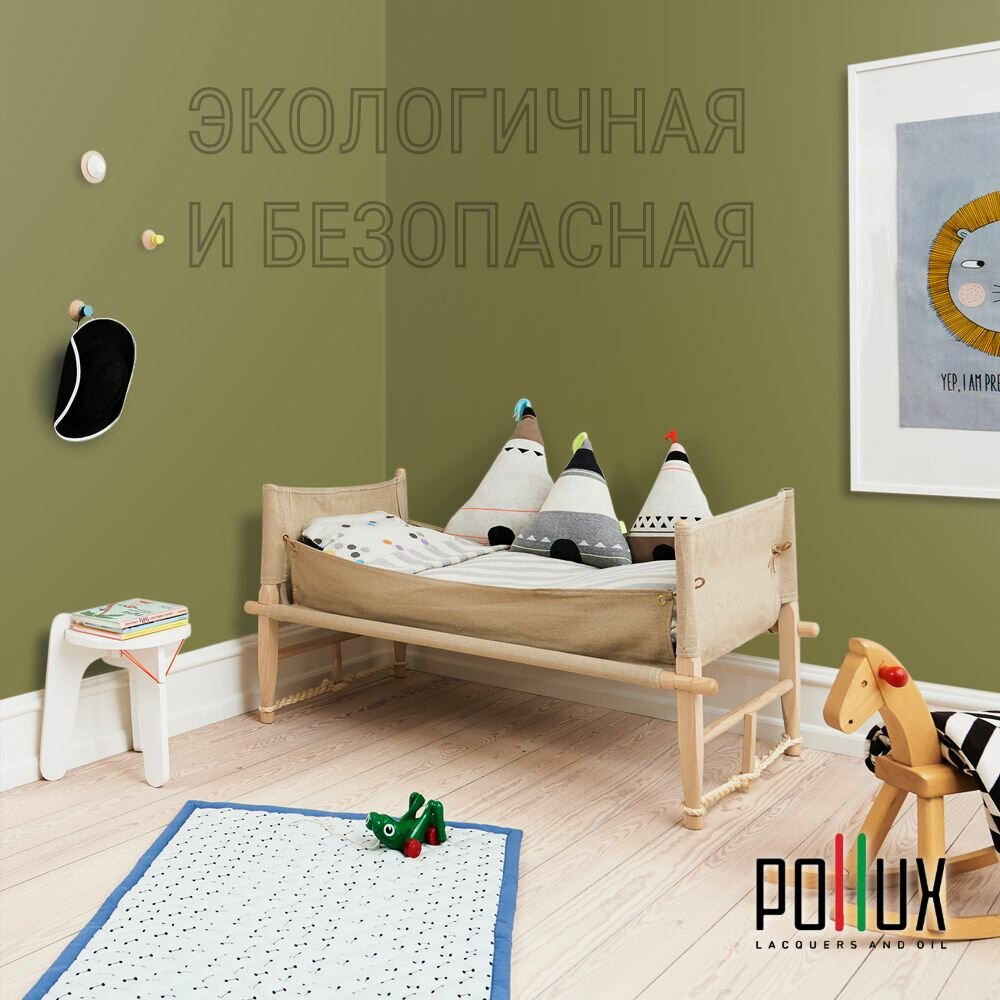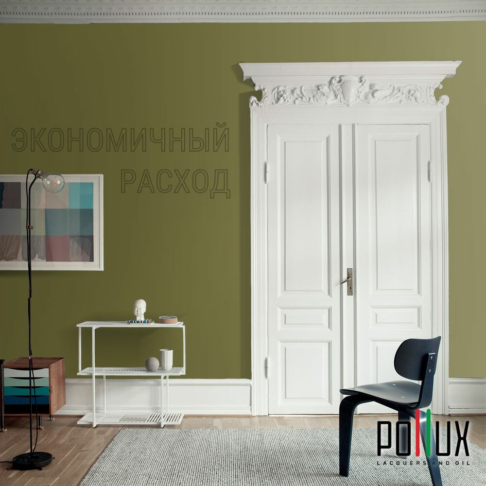 Краска моющаяся интерьерная для стен и потолков, Pollux INTERIOR без запаха, быстросохнущая, акриловая, матовое покрытие, цвет NCS S 8010-G70Y, 1л.