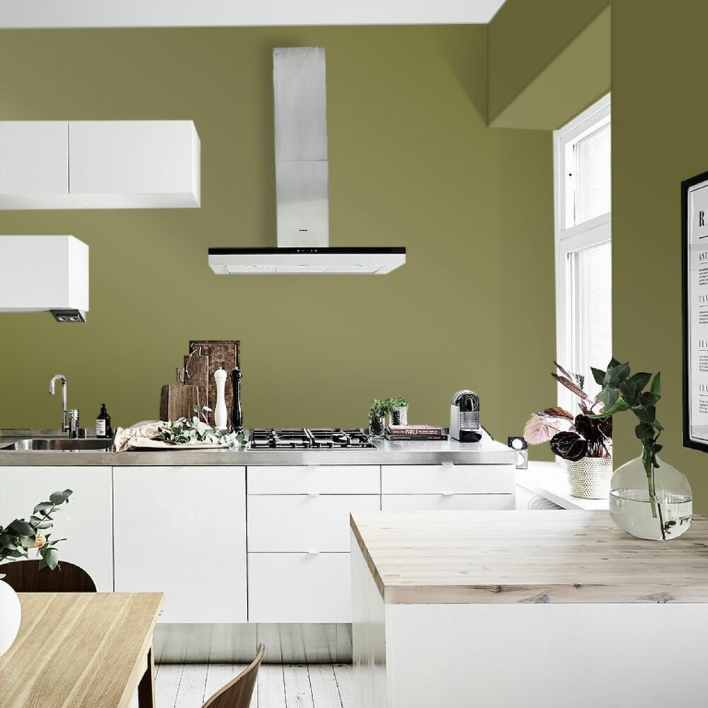 Краска моющаяся интерьерная для стен и потолков, Pollux INTERIOR без запаха, быстросохнущая, акриловая, матовое покрытие, цвет NCS S 6020-G70Y, 1л.