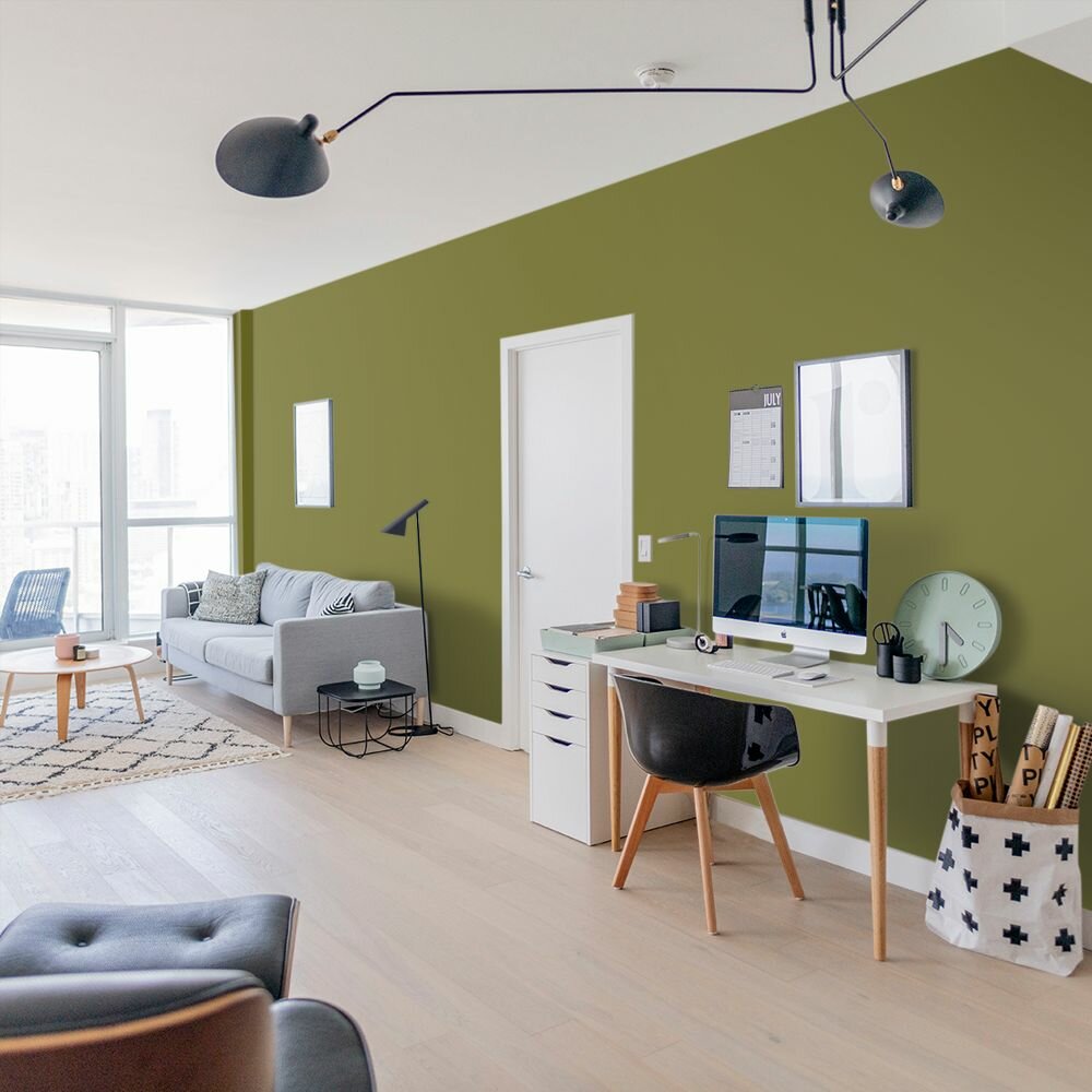 Краска моющаяся интерьерная для стен и потолков, Pollux INTERIOR без запаха, быстросохнущая, акриловая, матовое покрытие, цвет NCS S 6020-G70Y, 1л.