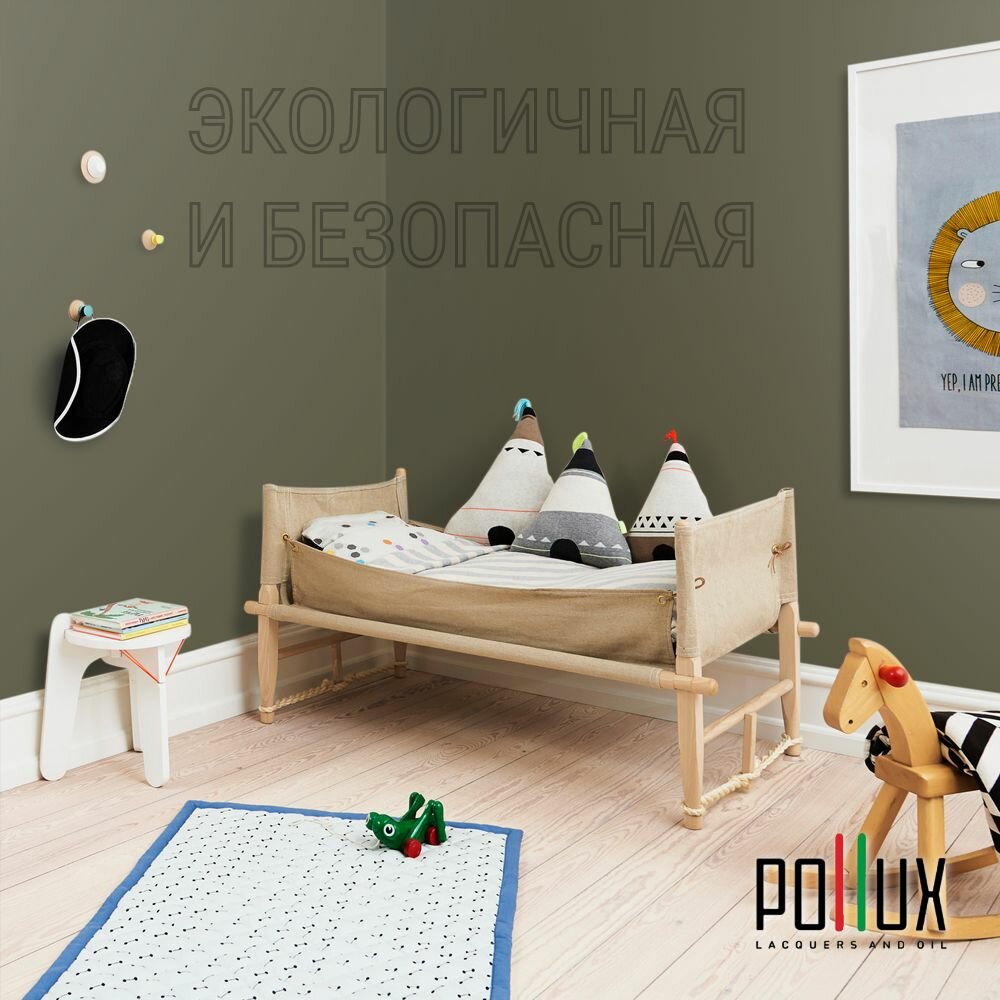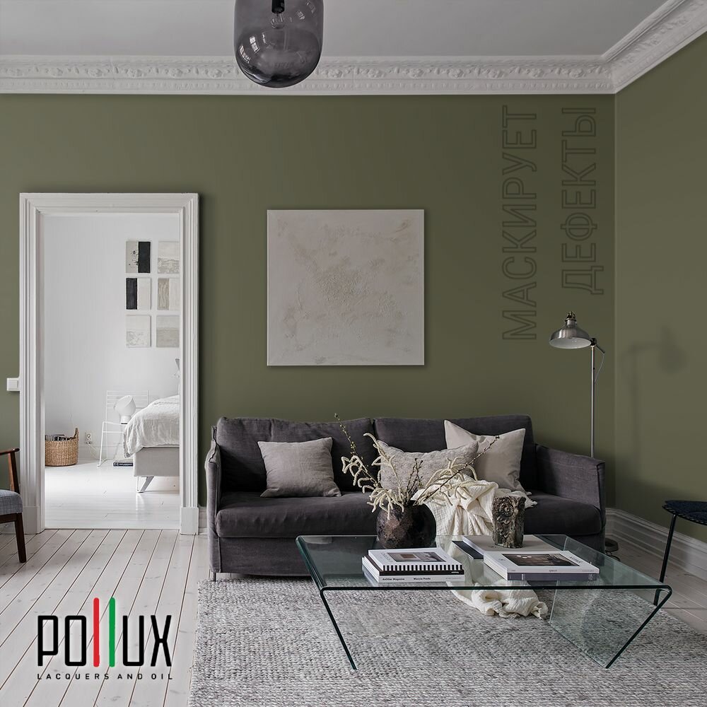 Краска моющаяся интерьерная для стен и потолков, Pollux INTERIOR без запаха, быстросохнущая, акриловая, матовое покрытие, цвет NCS S 8010-G70Y, 1л.