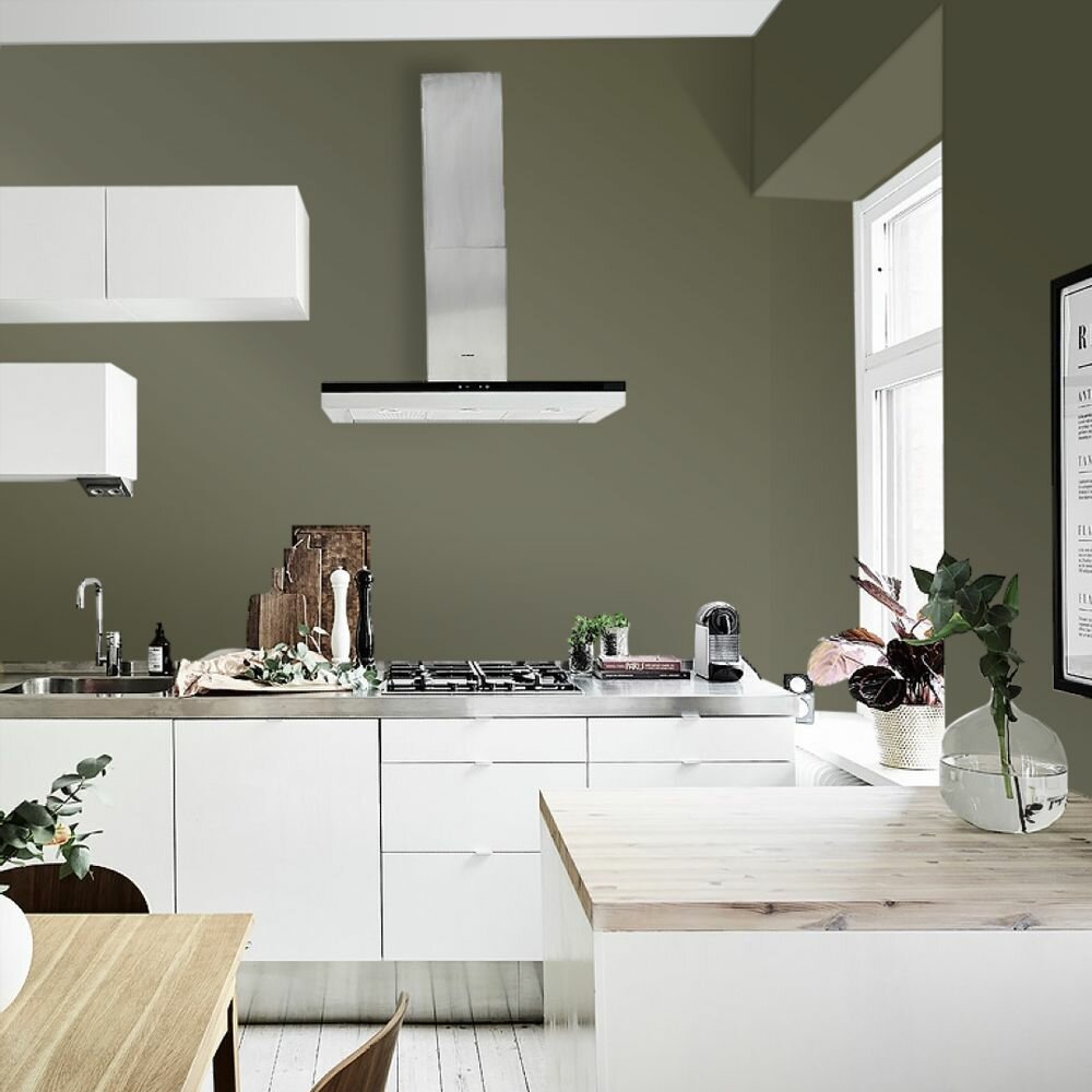 Краска моющаяся интерьерная для стен и потолков, Pollux INTERIOR без запаха, быстросохнущая, акриловая, матовое покрытие, цвет NCS S 3060-G70Y, 1л.