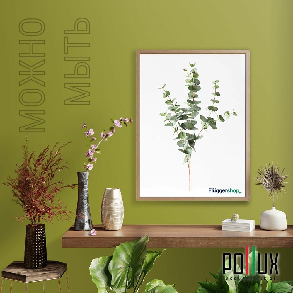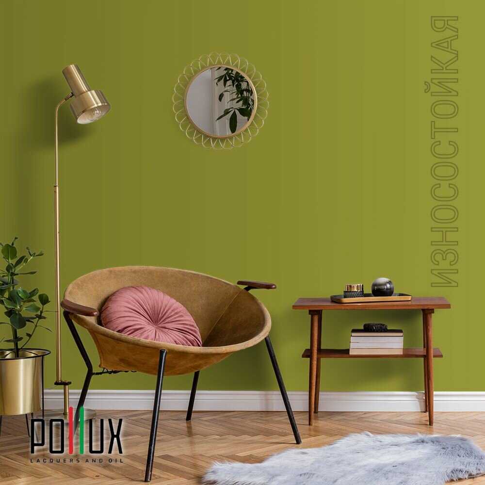 Краска моющаяся интерьерная для стен и потолков, Pollux INTERIOR без запаха, быстросохнущая, акриловая, матовое покрытие, цвет NCS S 6030-G70Y, 1л.