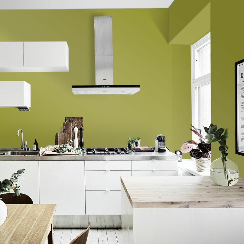 Краска моющаяся интерьерная для стен и потолков, Pollux INTERIOR без запаха, быстросохнущая, акриловая, матовое покрытие, цвет NCS S 6020-G70Y, 1л.