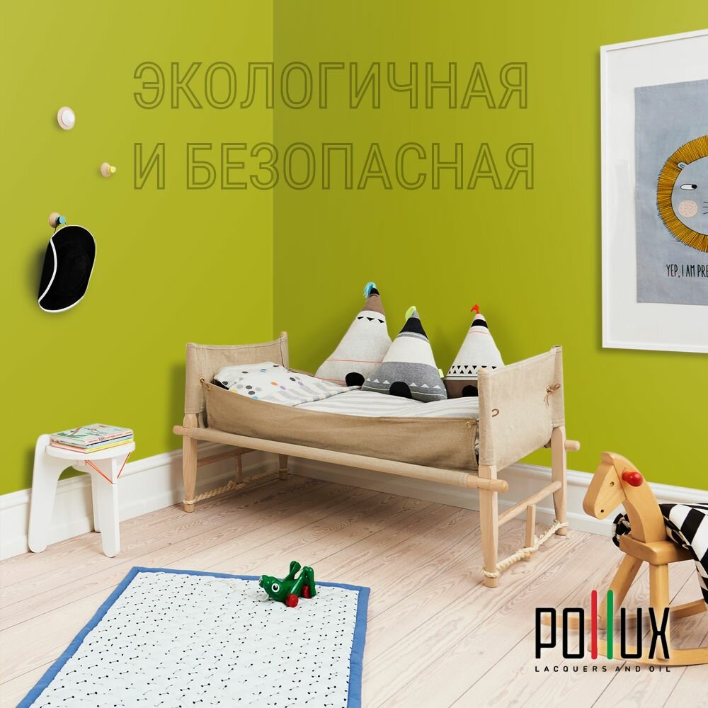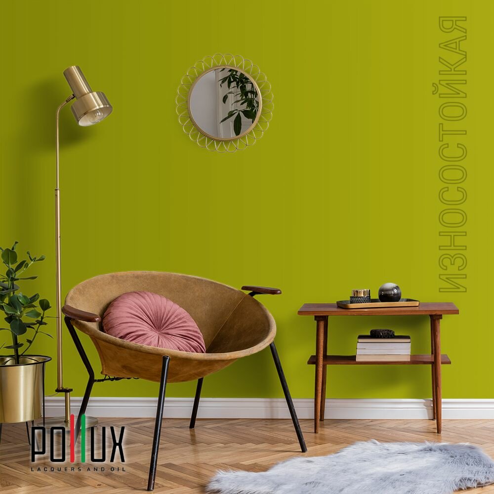 Краска моющаяся интерьерная для стен и потолков, Pollux INTERIOR без запаха, быстросохнущая, акриловая, матовое покрытие, цвет NCS S 6020-G70Y, 1л.