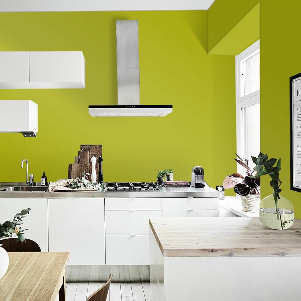 Краска моющаяся интерьерная для стен и потолков, Pollux INTERIOR без запаха, быстросохнущая, акриловая, матовое покрытие, цвет NCS S 0575-G70Y, 1л.