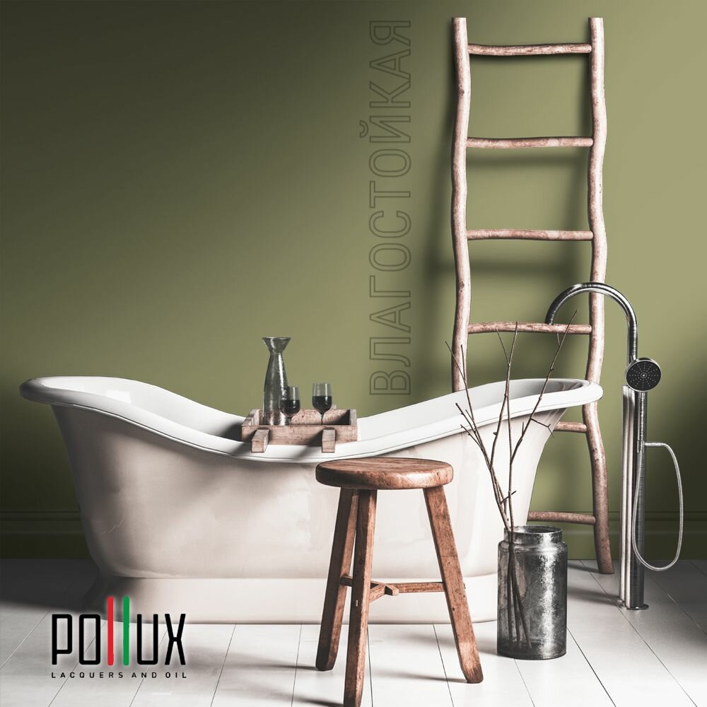 Краска моющаяся интерьерная для стен и потолков, Pollux INTERIOR без запаха, быстросохнущая, акриловая, матовое покрытие, цвет NCS S 8010-G70Y, 1л.