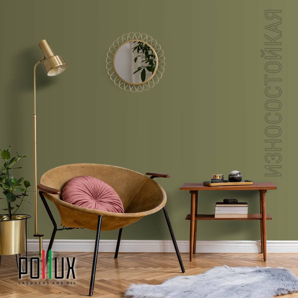 Краска моющаяся интерьерная для стен и потолков, Pollux INTERIOR без запаха, быстросохнущая, акриловая, матовое покрытие, цвет NCS S 3060-G70Y, 1л.