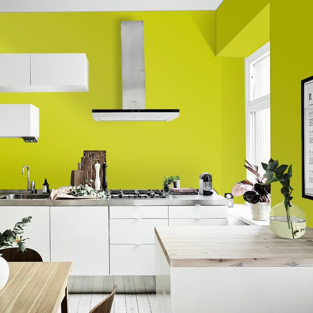 Краска моющаяся интерьерная для стен и потолков, Pollux INTERIOR без запаха, быстросохнущая, акриловая, матовое покрытие, цвет NCS S 0575-G70Y, 1л.