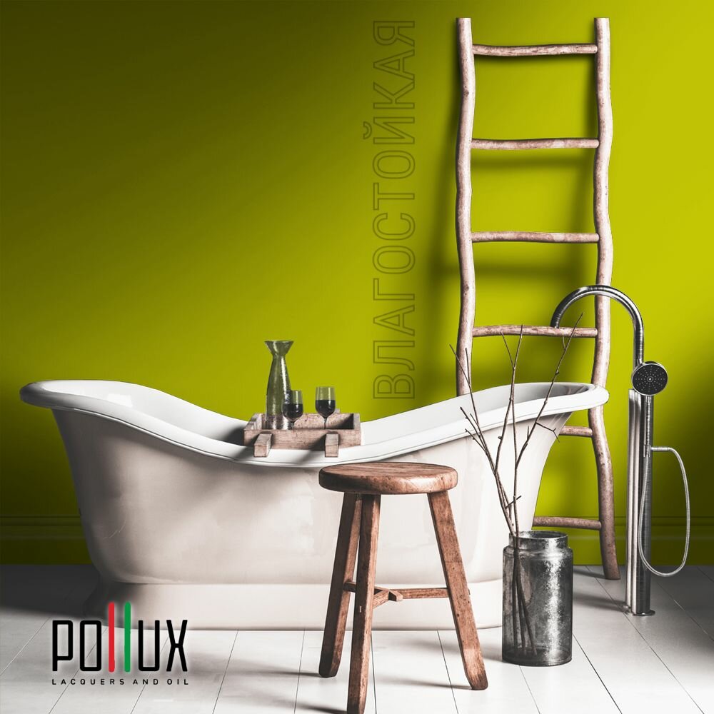 Краска моющаяся интерьерная для стен и потолков, Pollux INTERIOR без запаха, быстросохнущая, акриловая, матовое покрытие, цвет NCS S 3030-G70Y, 1л.