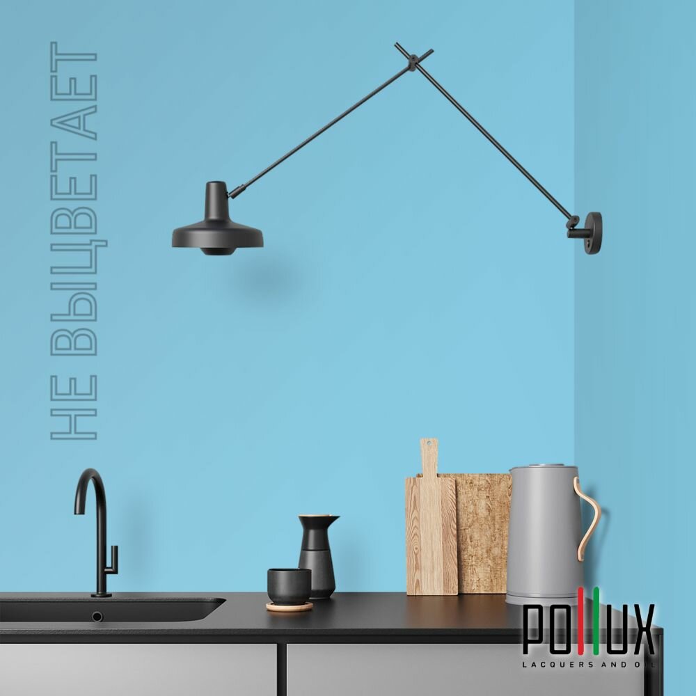 Краска моющаяся интерьерная для стен и потолков, Pollux INTERIOR без запаха, быстросохнущая, акриловая, матовое покрытие, цвет NCS S 2060-B, 1л.