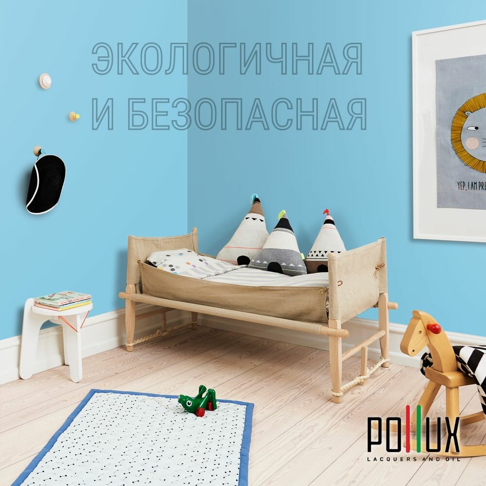 Краска моющаяся интерьерная для стен и потолков, Pollux INTERIOR без запаха, быстросохнущая, акриловая, матовое покрытие, цвет NCS S 2010-B, 1л.