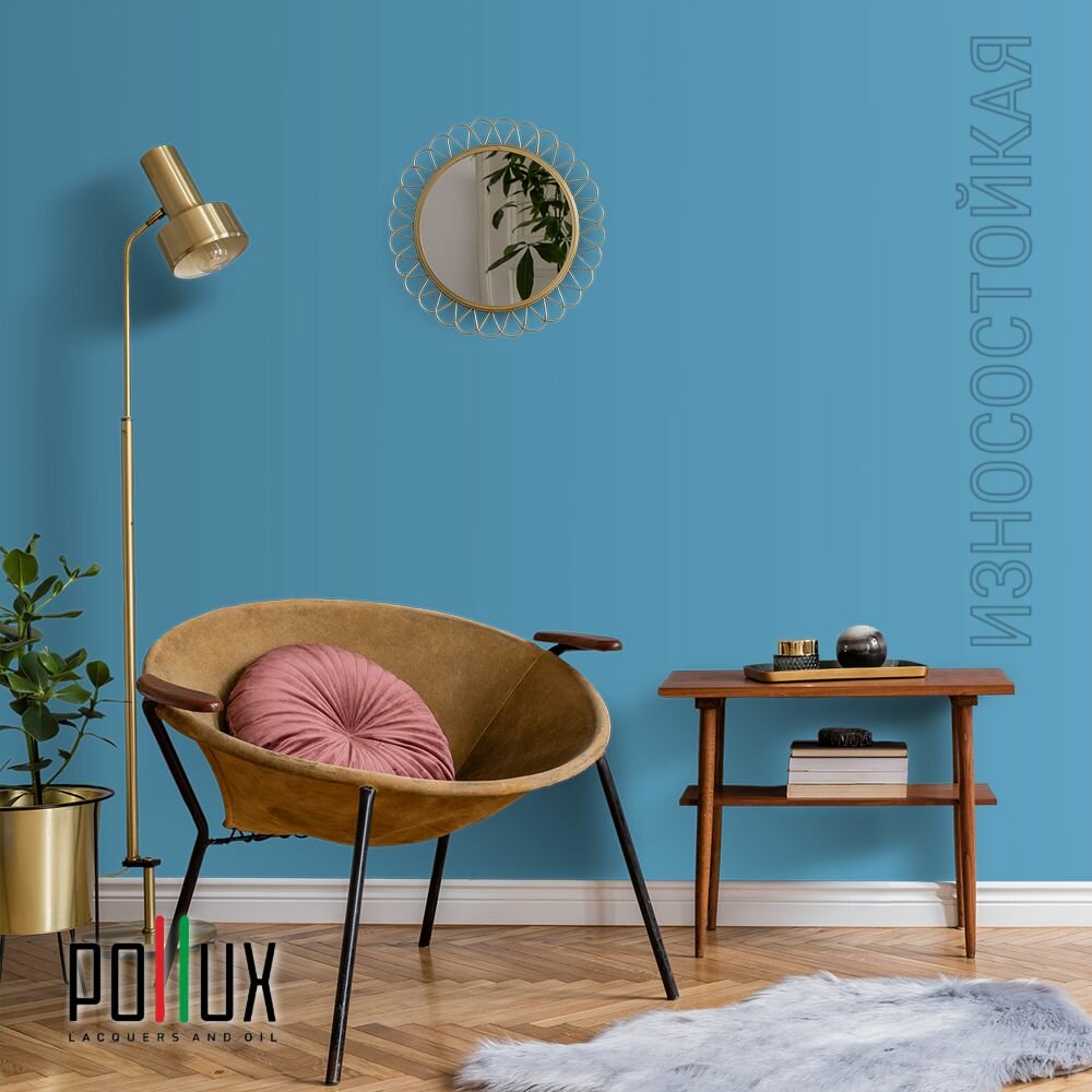 Краска моющаяся интерьерная для стен и потолков, Pollux INTERIOR без запаха, быстросохнущая, акриловая, матовое покрытие, цвет NCS S 5030-B, 1л.