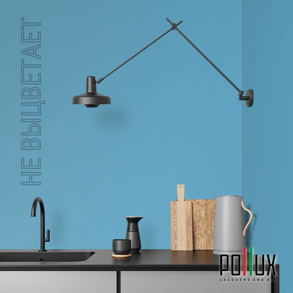 Краска моющаяся интерьерная для стен и потолков, Pollux INTERIOR без запаха, быстросохнущая, акриловая, матовое покрытие, цвет NCS S 5020-B, 1л.