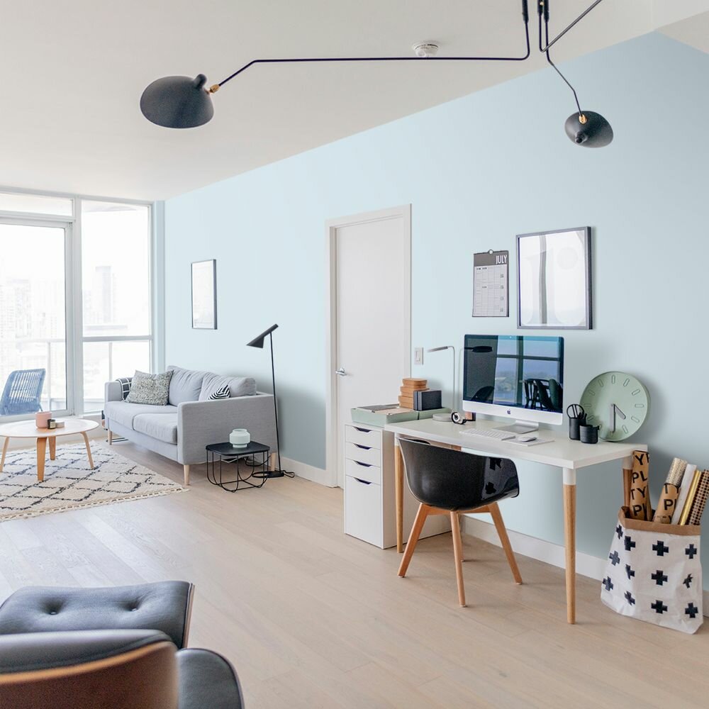 Краска моющаяся интерьерная для стен и потолков, Pollux INTERIOR без запаха, быстросохнущая, акриловая, матовое покрытие, цвет NCS S 2010-B, 1л.