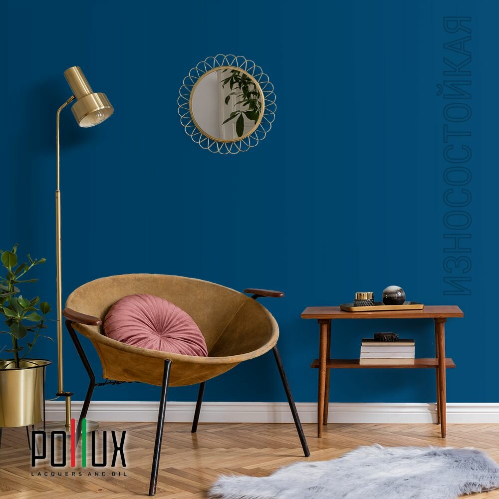 Краска моющаяся интерьерная для стен и потолков, Pollux INTERIOR без запаха, быстросохнущая, акриловая, матовое покрытие, цвет NCS S 3030-B, 1л.