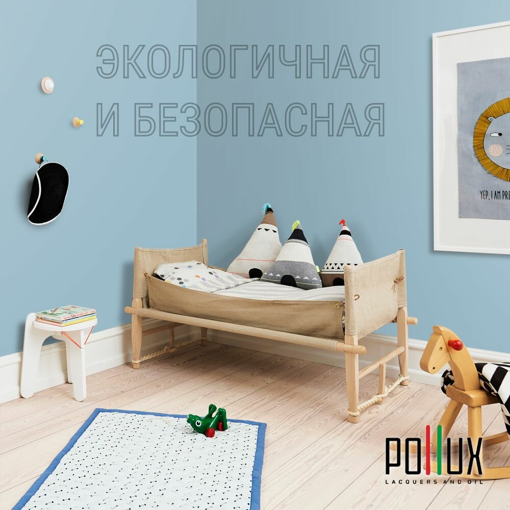Краска моющаяся интерьерная для стен и потолков, Pollux INTERIOR без запаха, быстросохнущая, акриловая, матовое покрытие, цвет NCS S 5020-B, 1л.