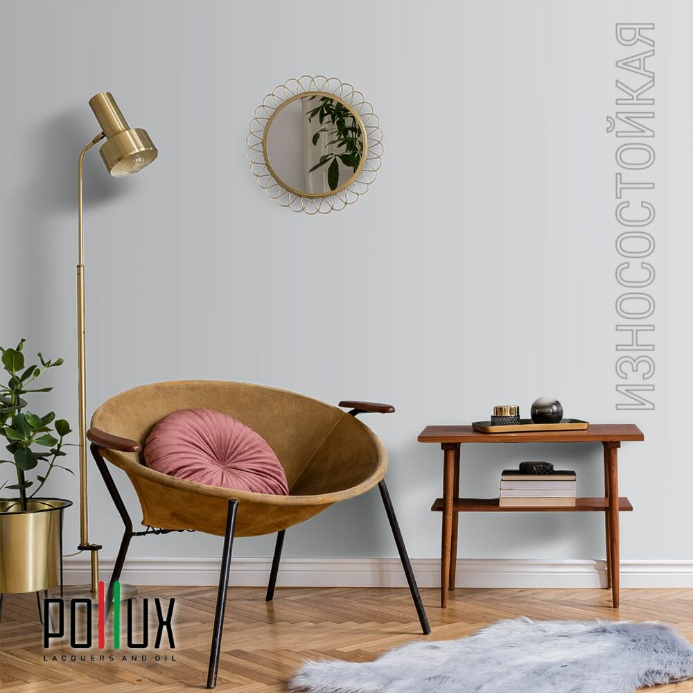 Краска моющаяся интерьерная для стен и потолков, Pollux INTERIOR без запаха, быстросохнущая, акриловая, матовое покрытие, цвет NCS S 2502-B, 1л.