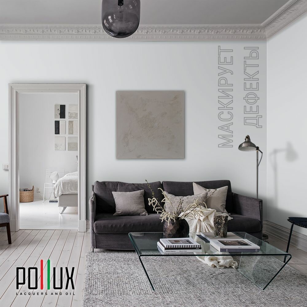 Краска моющаяся интерьерная для стен и потолков, Pollux INTERIOR без запаха, быстросохнущая, акриловая, матовое покрытие, цвет NCS S 0505-B, 1л.
