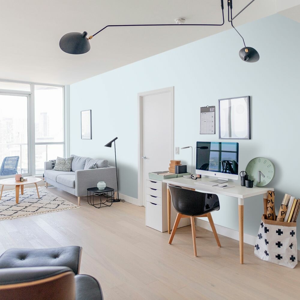 Краска моющаяся интерьерная для стен и потолков, Pollux INTERIOR без запаха, быстросохнущая, акриловая, матовое покрытие, цвет NCS S 5020-B, 1л.
