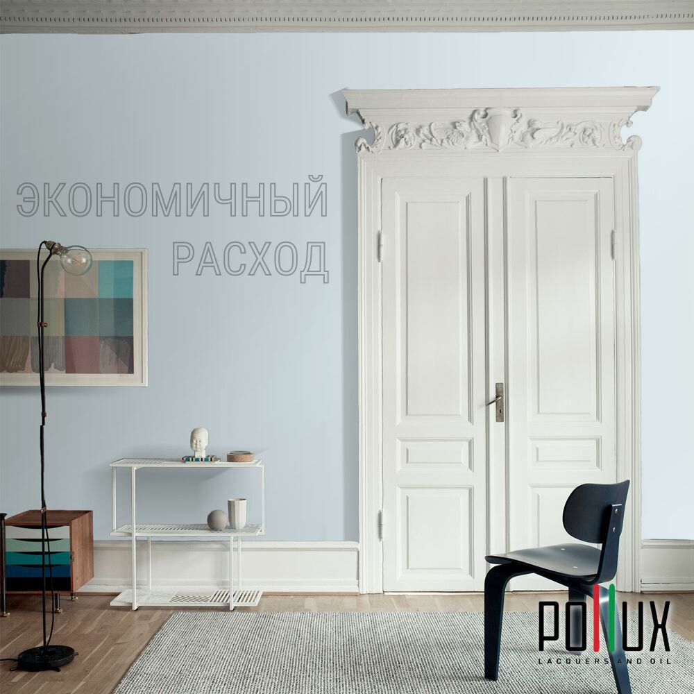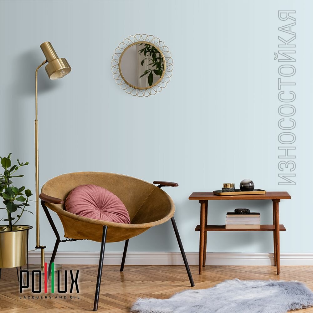Краска моющаяся интерьерная для стен и потолков, Pollux INTERIOR без запаха, быстросохнущая, акриловая, матовое покрытие, цвет NCS S 1030-B, 1л.