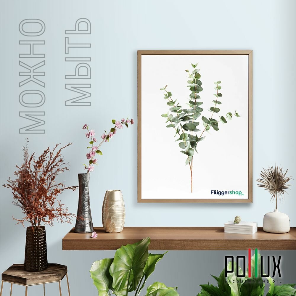 Краска моющаяся интерьерная для стен и потолков, Pollux INTERIOR без запаха, быстросохнущая, акриловая, матовое покрытие, цвет NCS S 1040-B, 1л.