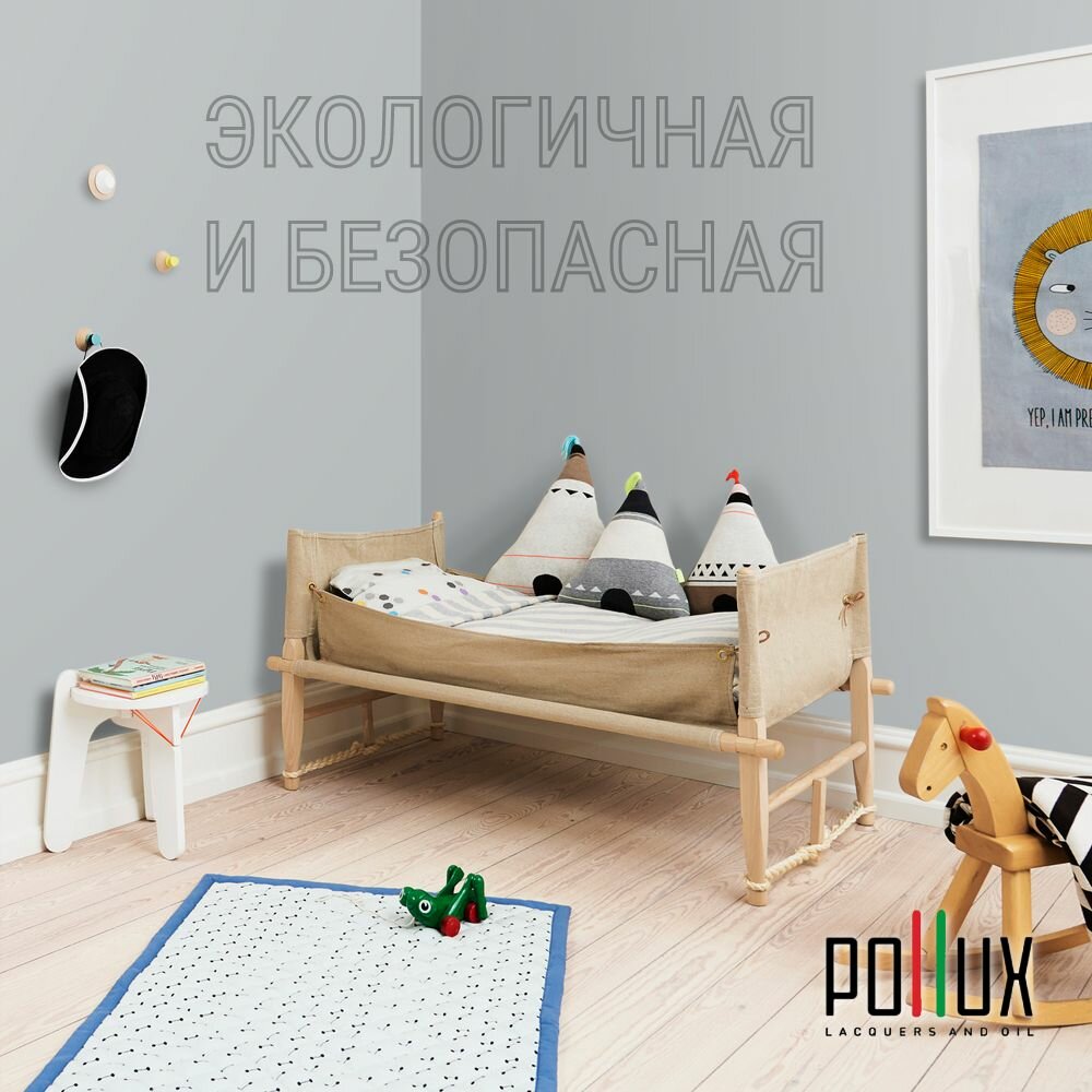 Краска моющаяся интерьерная для стен и потолков, Pollux INTERIOR без запаха, быстросохнущая, акриловая, матовое покрытие, цвет NCS S 1015-B, 1л.