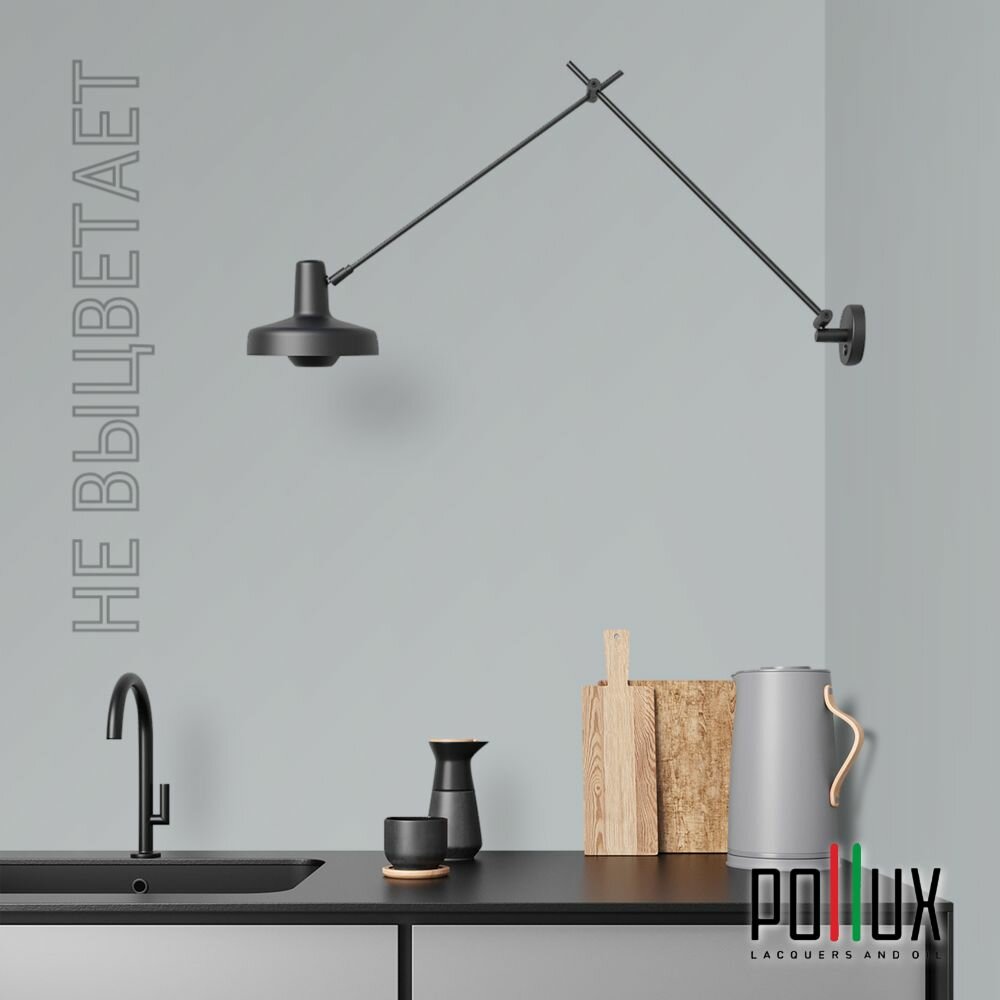 Краска моющаяся интерьерная для стен и потолков, Pollux INTERIOR без запаха, быстросохнущая, акриловая, матовое покрытие, цвет NCS S 7020-B, 1л.