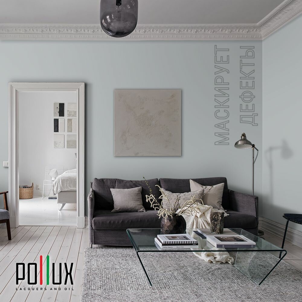 Краска моющаяся интерьерная для стен и потолков, Pollux INTERIOR без запаха, быстросохнущая, акриловая, матовое покрытие, цвет NCS S 1030-B, 1л.