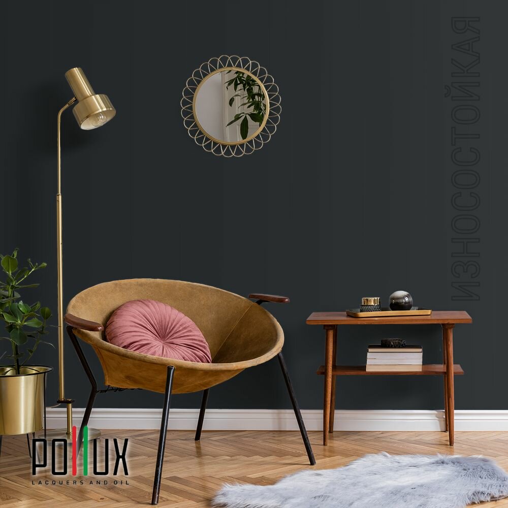 Краска моющаяся интерьерная для стен и потолков, Pollux INTERIOR без запаха, быстросохнущая, акриловая, матовое покрытие, цвет NCS S 7020-B, 1л.