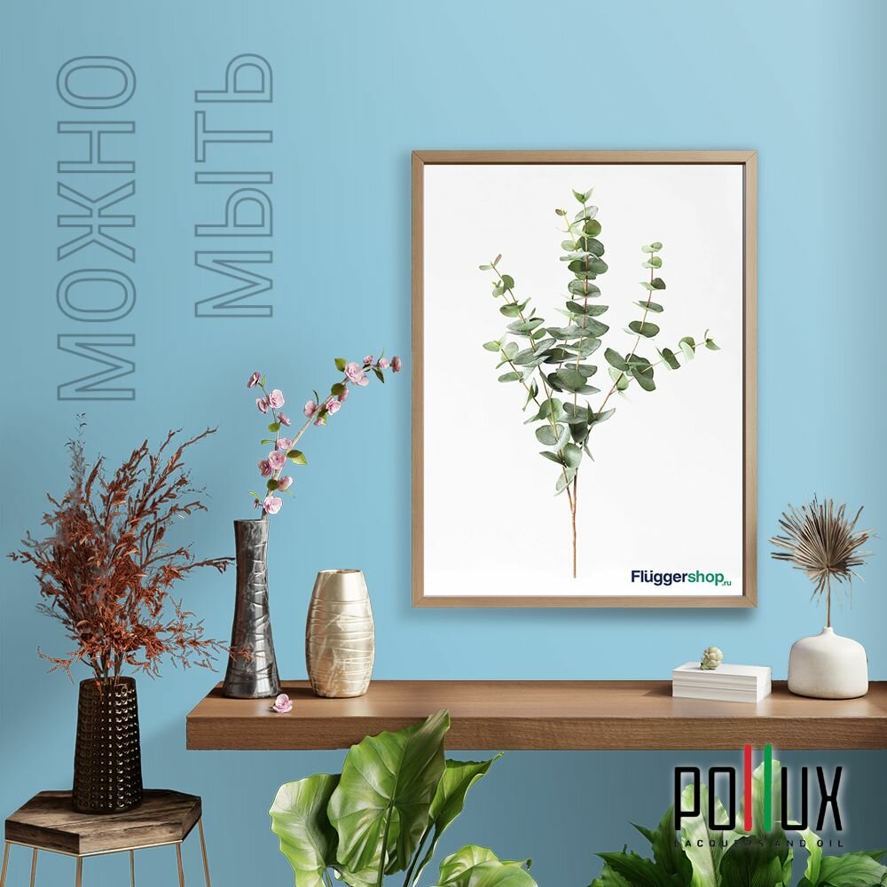 Краска моющаяся интерьерная для стен и потолков, Pollux INTERIOR без запаха, быстросохнущая, акриловая, матовое покрытие, цвет NCS S 2040-B, 1л.