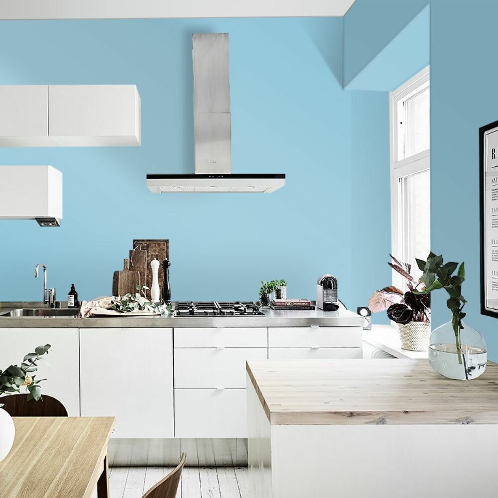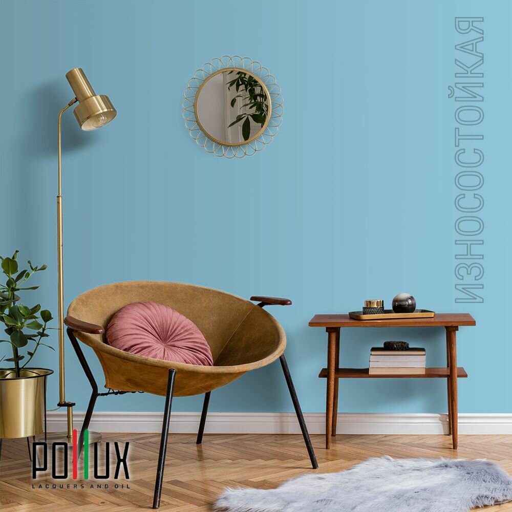 Краска моющаяся интерьерная для стен и потолков, Pollux INTERIOR без запаха, быстросохнущая, акриловая, матовое покрытие, цвет NCS S 5020-B, 1л.