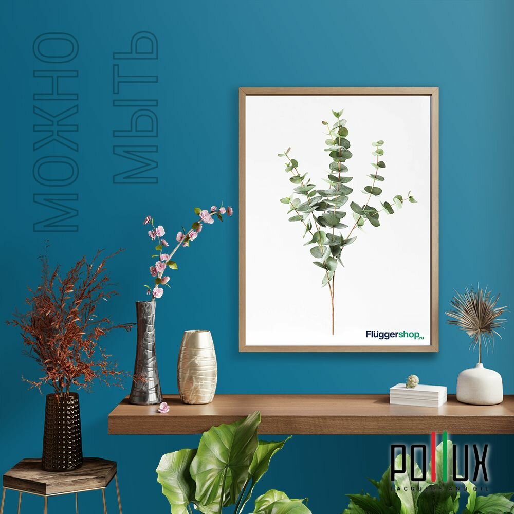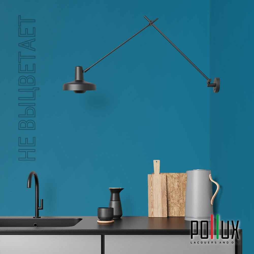 Краска моющаяся интерьерная для стен и потолков, Pollux INTERIOR без запаха, быстросохнущая, акриловая, матовое покрытие, цвет NCS S 4550-B, 1л.