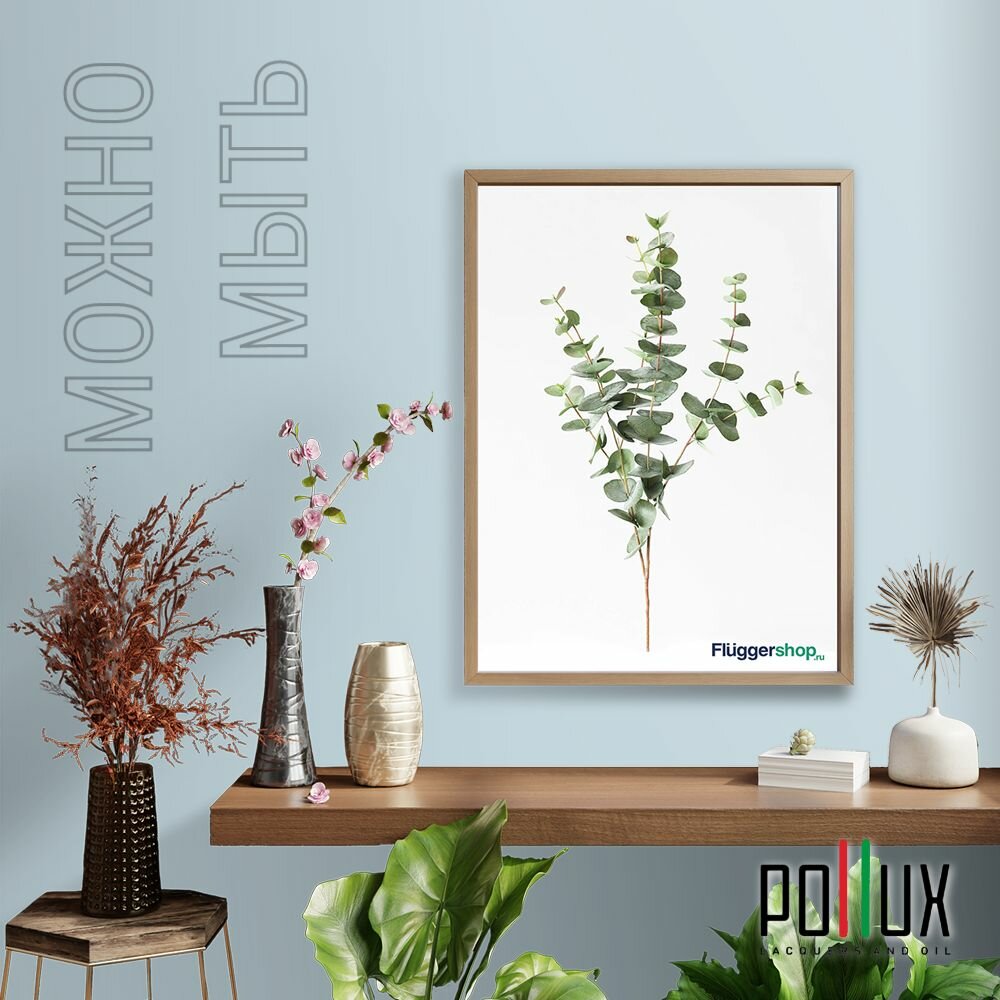 Краска моющаяся интерьерная для стен и потолков, Pollux INTERIOR без запаха, быстросохнущая, акриловая, матовое покрытие, цвет NCS S 5502-B, 1л.