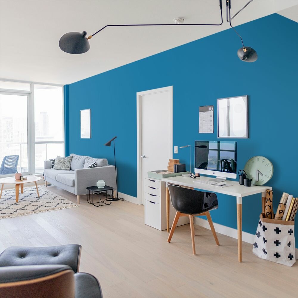 Краска моющаяся интерьерная для стен и потолков, Pollux INTERIOR без запаха, быстросохнущая, акриловая, матовое покрытие, цвет NCS S 4550-B, 1л.
