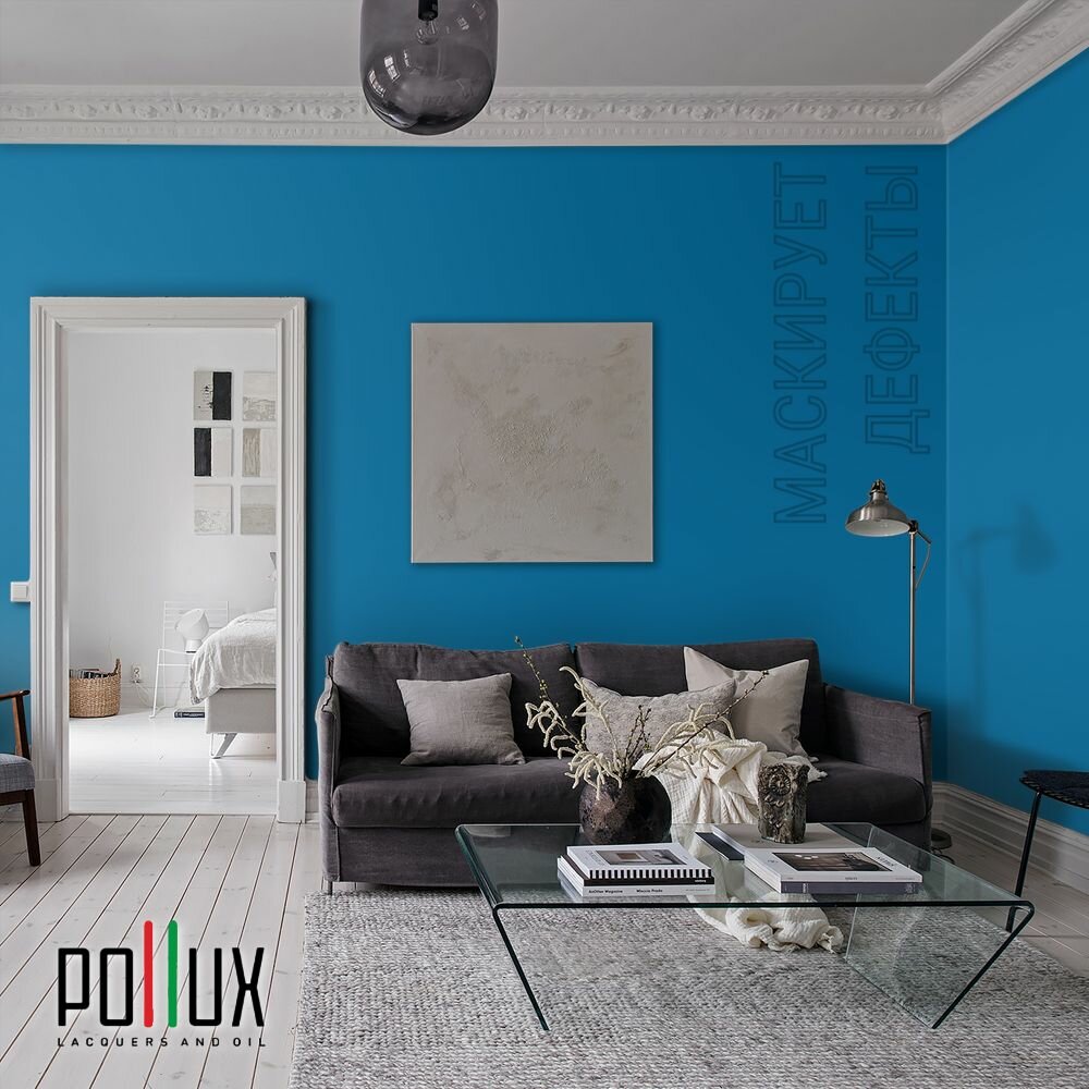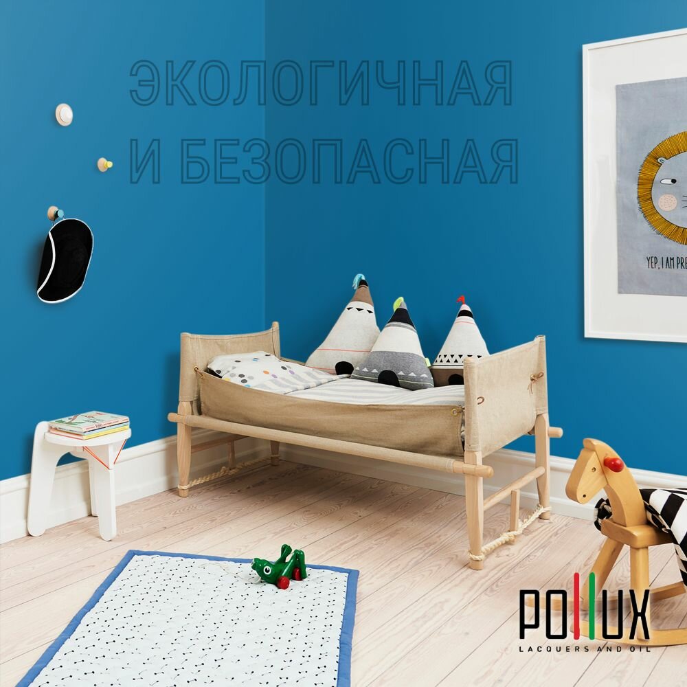Краска моющаяся интерьерная для стен и потолков, Pollux INTERIOR без запаха, быстросохнущая, акриловая, матовое покрытие, цвет NCS S 2040-B, 1л.